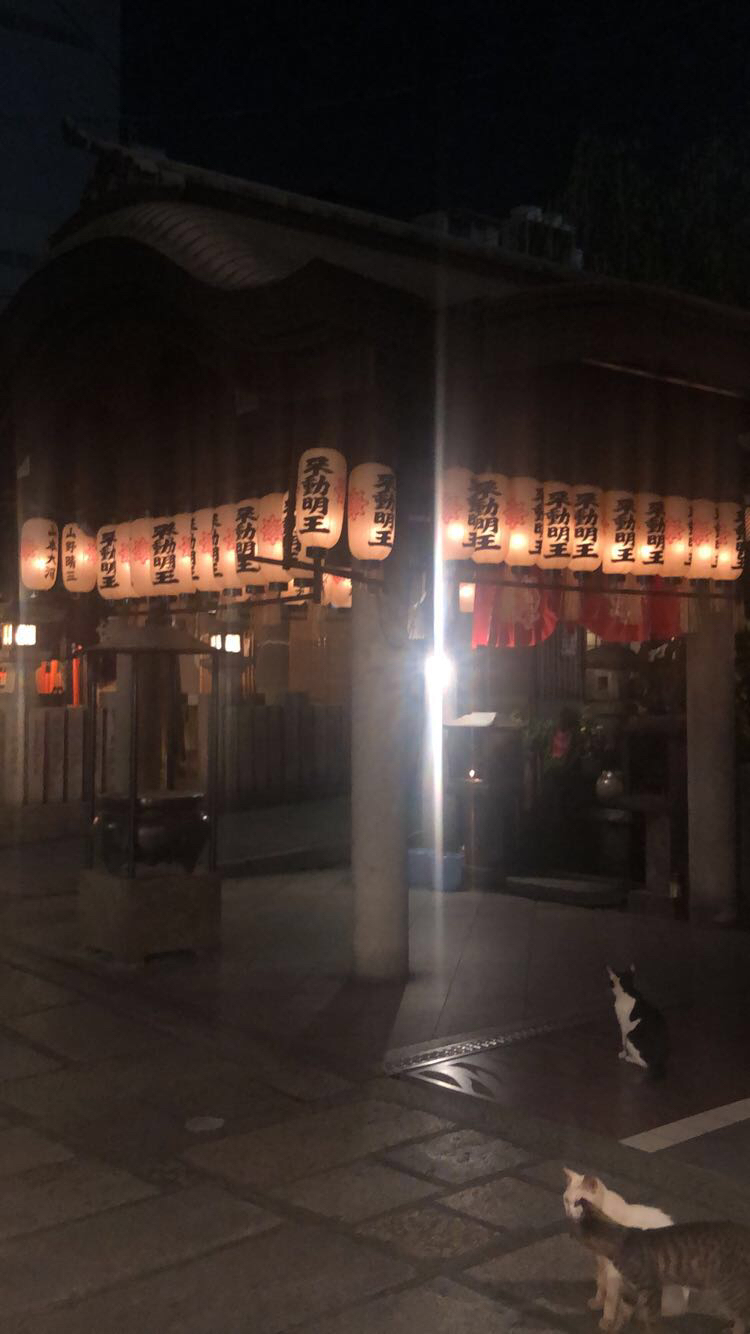 After dinner, I was looking for a more quiet atmosphere to settle down. I walked the Hozenji Yokocho, a shabby-looking alley, especially compared to the dazzling Dotonrobi right next to it. Although I felt serene in Dotonrobi, the silence and emptiness of the alleyway solidified the “away from the world” feeling. I walked past all the food places to get to the Hozenji Temple. I was feeling settled and calm when I arrived at the empty temple. The temple was beautiful — unlike the other temples that I have visited on my trip, the Hozenji Temple was simple. There was one shrine and just a few garlands of lanterns hanging from the roof. And best of all… there were cats. So many stray cats roamed around or just laid there. Some came up and let me pet them but most avoided me and ran away. I have never seen so many stray cats in an area before, I would have stayed there for the entire night if I could. I avoided going into the main area though, I didn’t want to provoke any cats or scare them away.