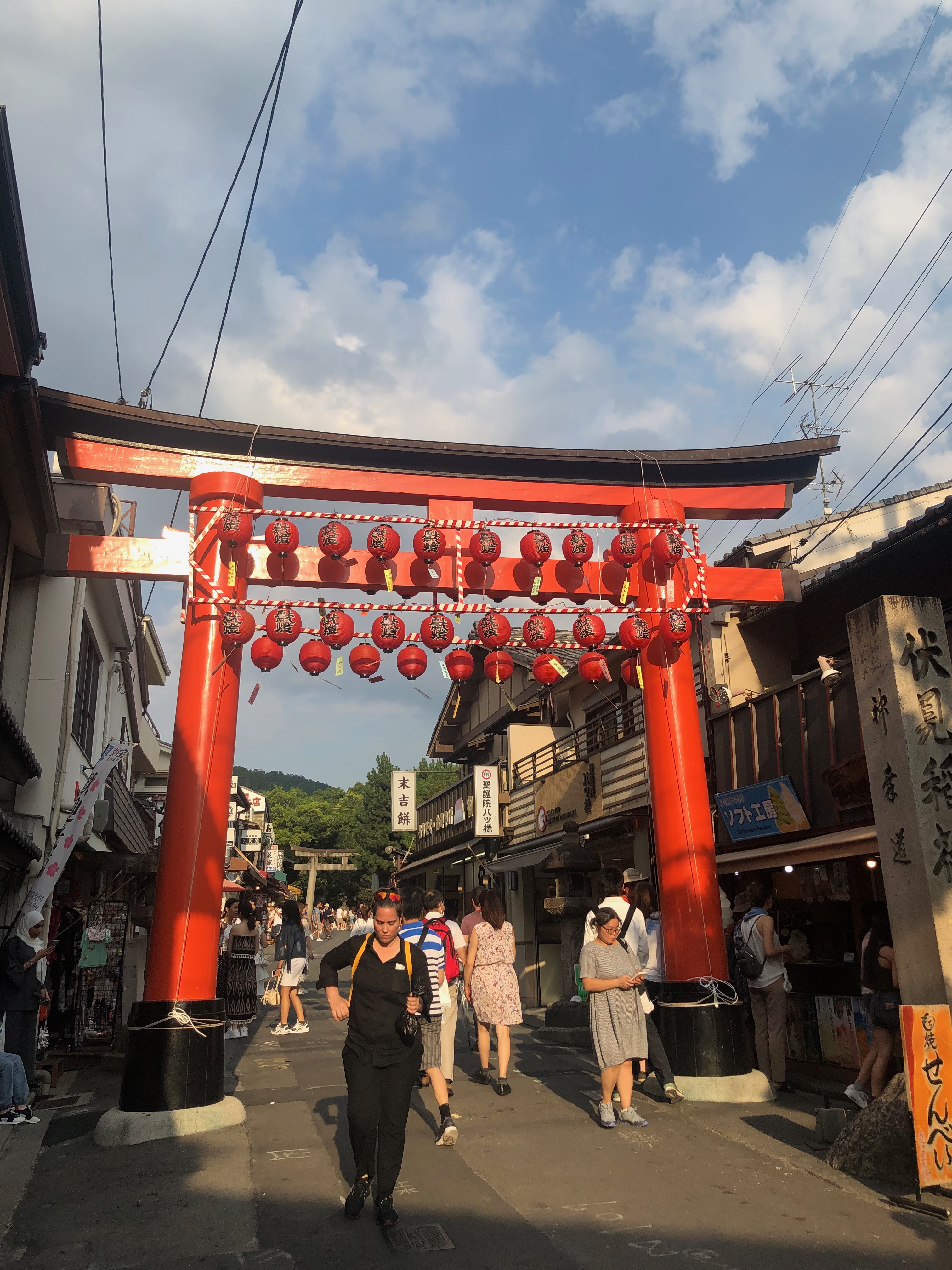 It would have been a huge regret of mine if I didn’t take the hour long train up the olde town road to Kyoto — the former capital of Japan. The train stations might as well have been the Narnia closets, because I arrived at another universe altogether. The train station was old, there were rickety stone floors that lead out the open station and to more rickety stone roads. Hiking up the streets, I constantly stopped to look at the shops face the road — most sold tourist items like masks, keychains, socks, etc. A lot had the religious items like amulets and beaded necklaces. I though that walking up the long road was enough — there was food at the end and the head shrine was astonishing. You had to walk through this huge entrance to approach the palace-like shrine. There were endless wishes and prayers hung or tied around the shrine and the shrine had people praying and ringing the bell. I looked inside the shrine and it was just as amazing inside. It was designed and built with so much dedication, you can practically see the guy carving the intricate designs inside.
