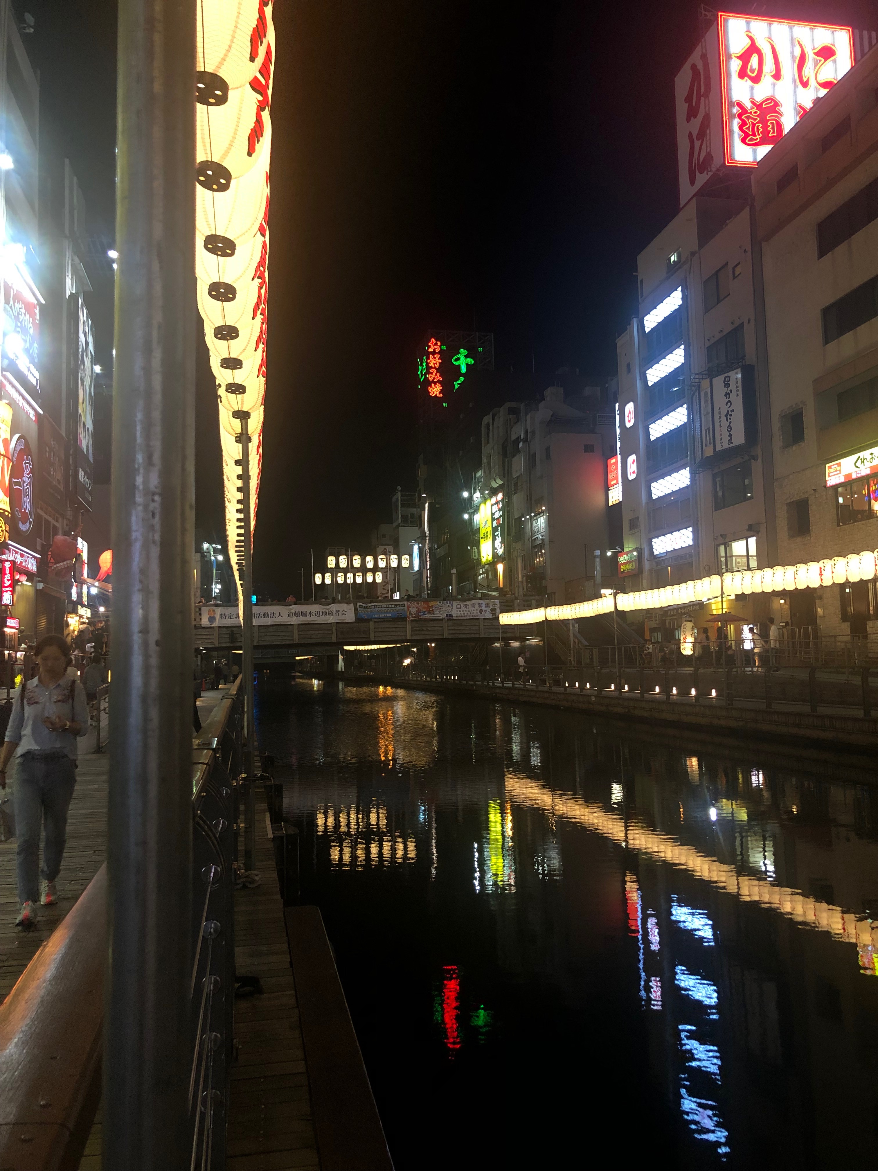 At night, I headed to Dotonrobi, where I saw the Glico Running Man sign and walked the streets of food, arcades and crazy designs. I walked along the Tobbori River, it was really serene despite the crowds of people milling around. The buildings were so tall it was almost suffocating. I like the feeling of being protected by the buildings and lanterns hanging next to the river. I’m somewhere no one else can find me, where I can be in my own world.