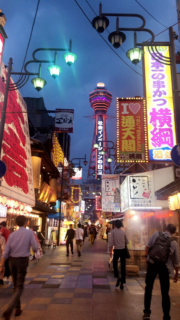After a hearty (& risky) meal and a great walk around the streets, I headed towards the Tsukenkaku Tower. I had no intention of going up, seeing it light up was good enough for me.
